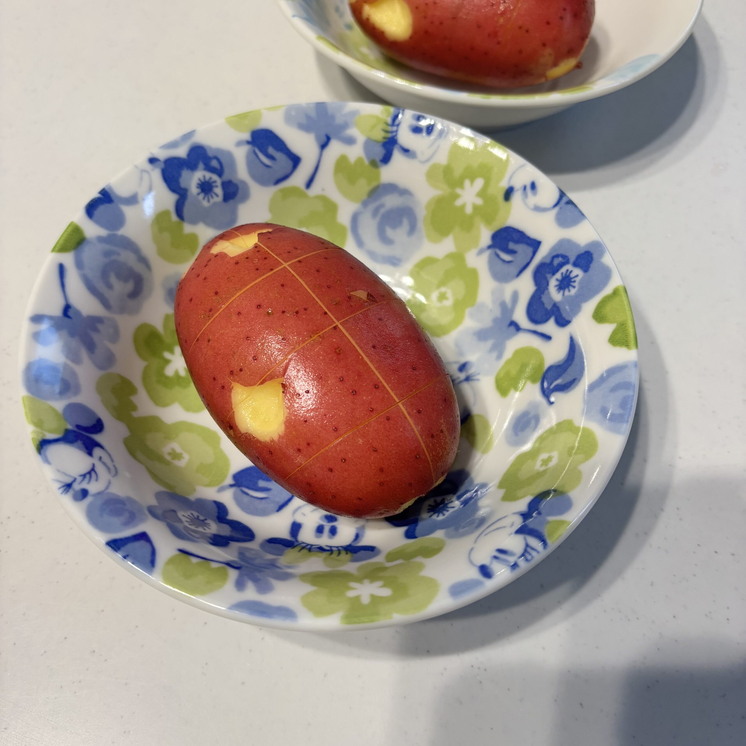 - 皮に十字に切り込みを入れる
